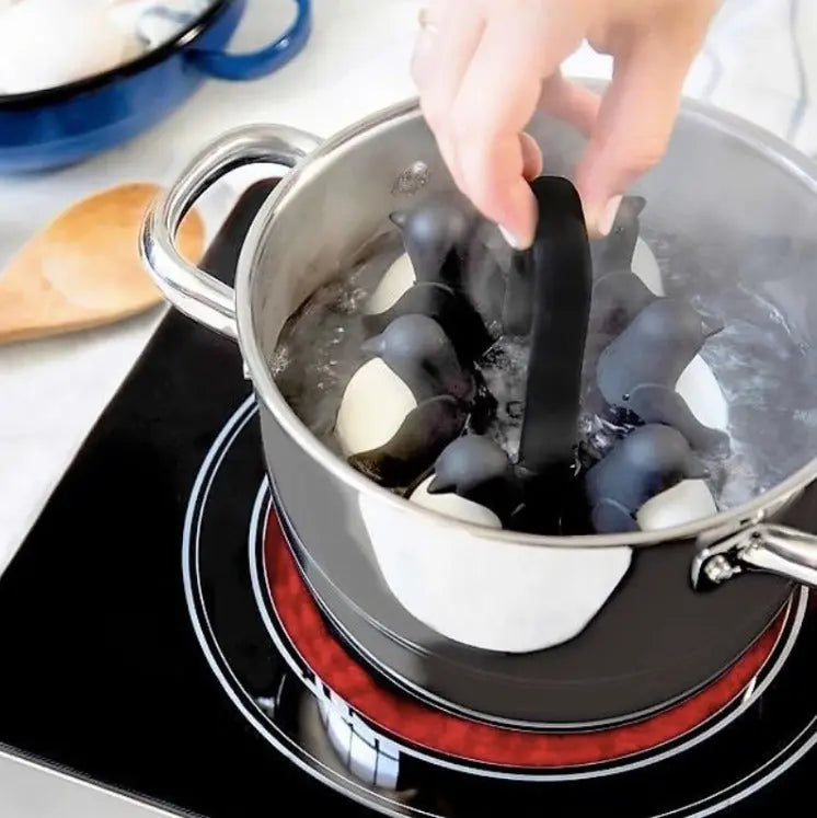 Der Pinguin-Eierhalter Kocher von Homerely bringt Spass und Funktionalität in deine Küche. Mit Platz für bis zu sechs Eier ermöglicht er dir, deine eigene kleine Pinguin-Kolonie zu erstellen. Setze die Eier einfach in die vorgesehenen Halterungen und stelle den Pinguin in einen Topf mit kochendem Wasser, um perfekt hart- oder weichgekochte Eier zuzubereiten. Nach dem Kochen kannst du den Eierhalter direkt auf den Tisch stellen und deine Gäste mit diesem einzigartigen Design begeistern. Hergestellt aus hochwertigem, lebensmittelechtem Kunststoff, ist der Pinguin-Eierhalter BPA-frei und spülmaschinengeeignet, was die Reinigung zum Kinderspiel macht. Der lange Griff bleibt während des Kochens kühl, sodass du die Eier sicher und problemlos in das kochende Wasser ein- und herausnehmen kannst. Ein kleines Loch am Boden des Halters sorgt dafür, dass überschüssiges Wasser abläuft und der Eierhalter schnell trocknet. Dieser Eierhalter ist nicht nur funktional, sondern auch ein dekoratives Element für deine Küche. Ob zum Frühstück mit der Familie oder beim Brunch mit Freunden – der Pinguin-Eierhalter Kocher von Homerely wird sicherlich für Gesprächsstoff sorgen. Bestelle jetzt und bringe Spass und Effizienz in deine tägliche Küchenroutine!