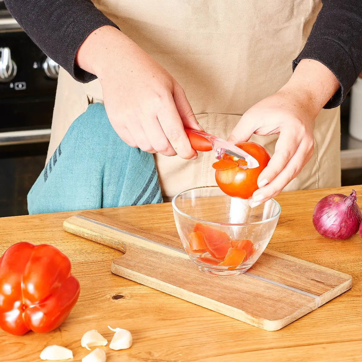 Präzise gezahnte Edelstahlklinge für zarte Schalen, Ergonomischer, rutschfester Griff für sicheren Halt, Spülmaschinenfest und leicht zu reinigen