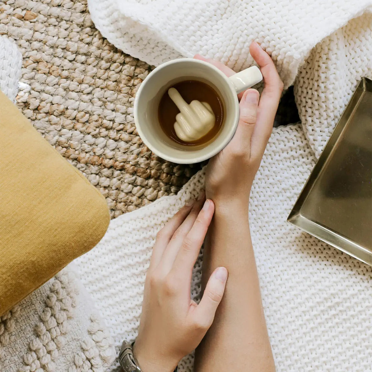 Praktisches Trinkgefäß mit 330 ml Fassungsvermögen, Humorvolle Überraschung mit verstecktem Mittelfinger, Langlebige Keramikkonstruktion für den täglichen Gebrauch