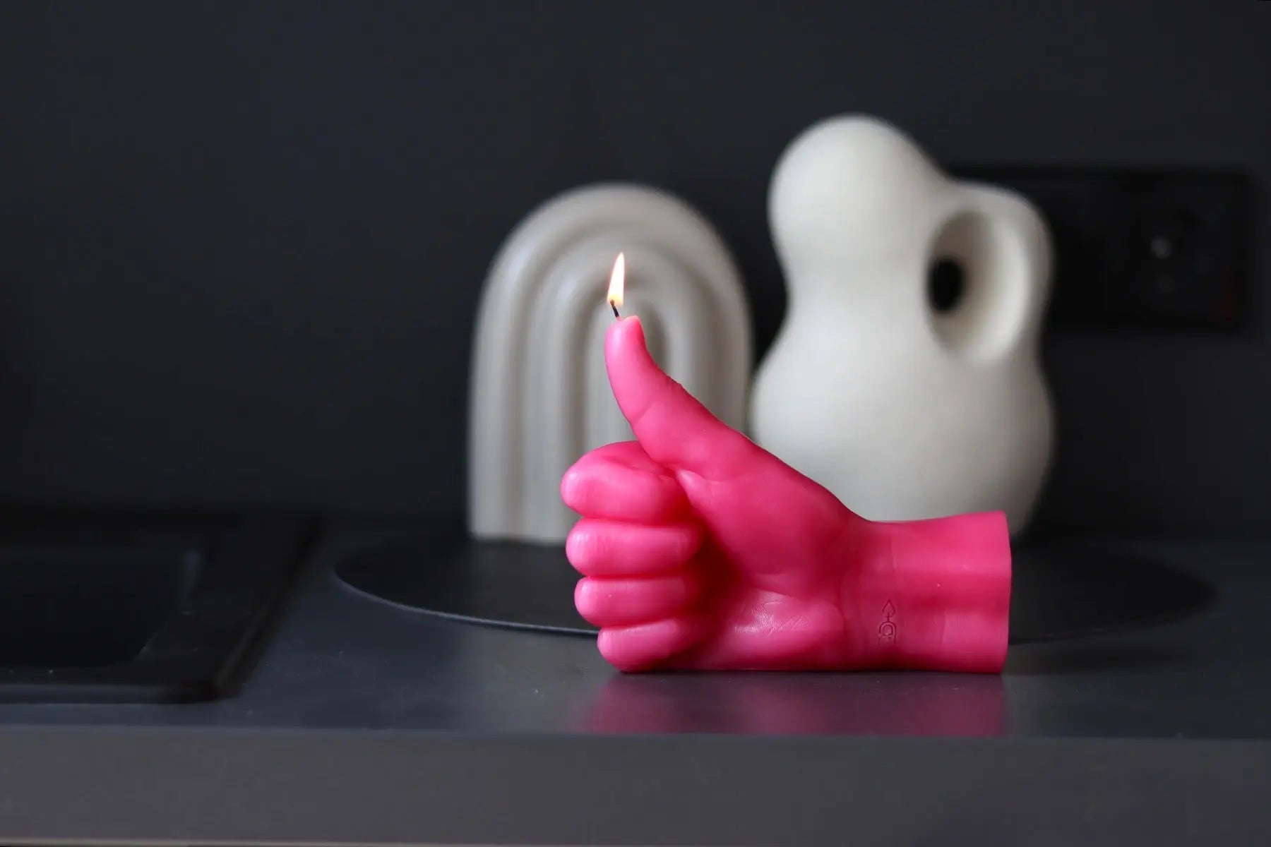 Mit der „Thumbs Up“-Kerze kann man auf stylische Weise Zustimmung und Unterstützung ausdrücken. Die ikonische Geste, die durch das Facebook-Like berühmt geworden ist, gibt es jetzt als realistisch aussehende Handkerze.