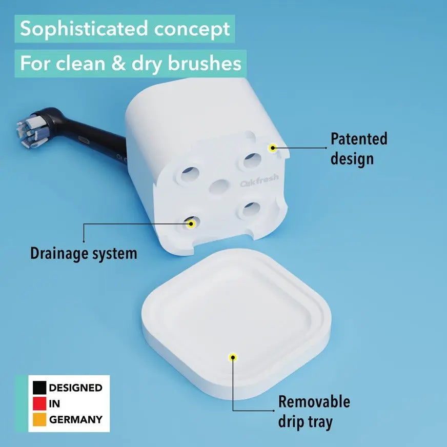 Hygienischer Halter mit integriertem Abfluss-System, Passend für alle gängigen Aufsteckbürsten, Spülmaschinenfest und sterilisierbar
